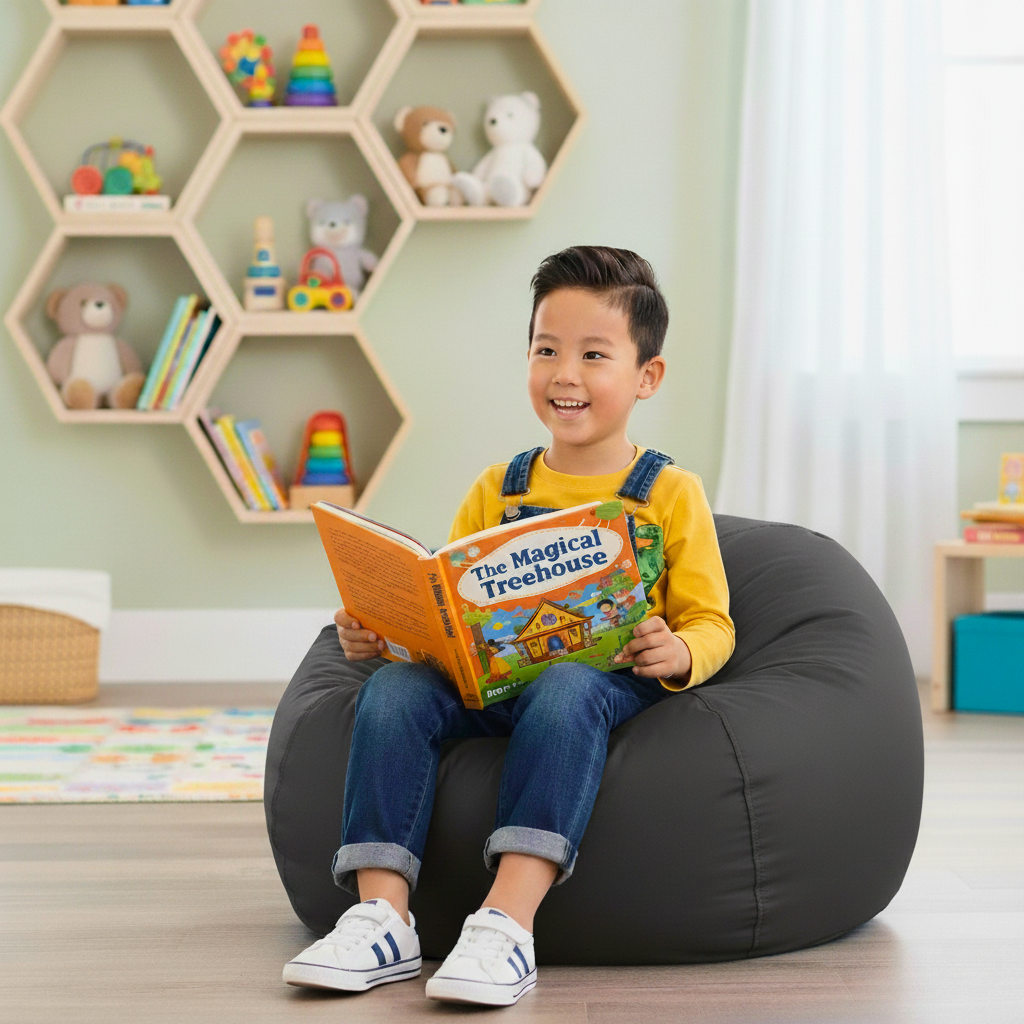 Ce pouf ne se contente pas de le gonfler : il est vraiment fait pour vous ! Rempli de billes de haute densité de qualité supérieure, c'est un espace douillet qui s'adapte parfaitement aux besoins de votre enfant. Léger et facile à déplacer, il est prêt à s'adapter à toutes les pièces et à toutes les aventures qu'il imagine.
